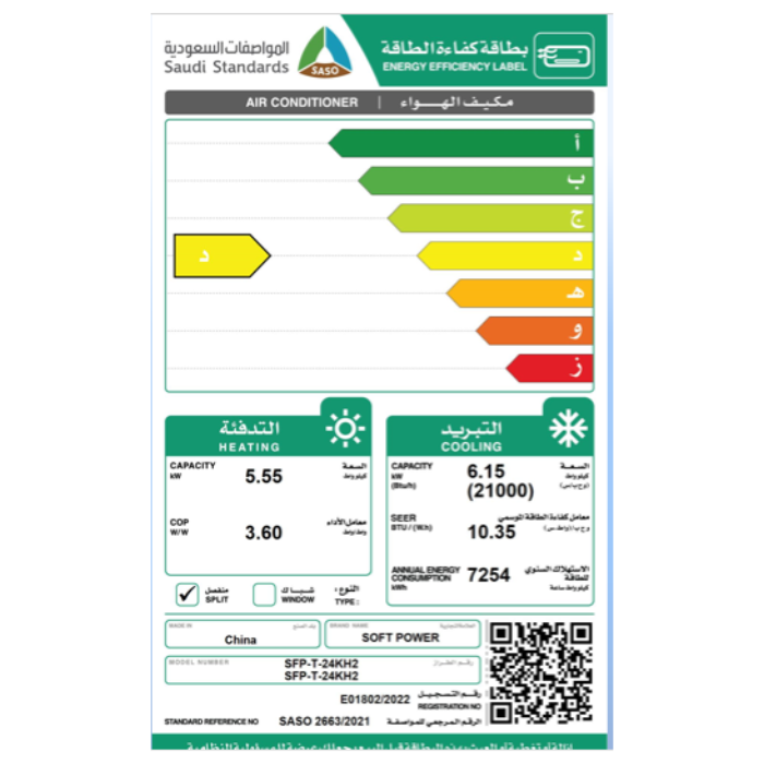 خصائص مكيف اسبليت سوفت باور 24000 وحدة حار و بارد :