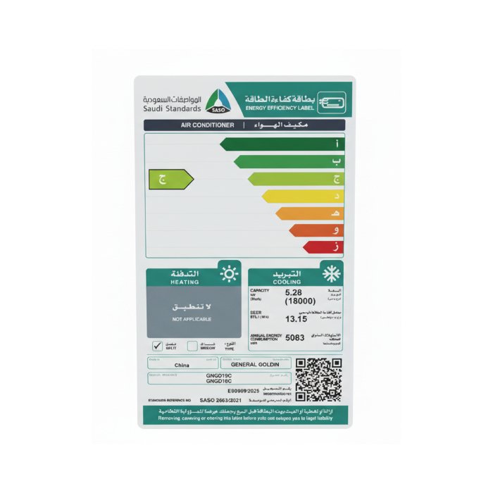 مواصفات مكيف اسبلت 18000 وحدة جنرال جولدن انفرتر – بارد :