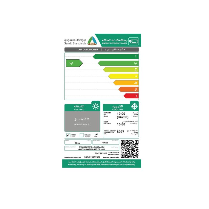 خصائص مكيف جري اي بلس جداري 34200 وحدة انفرتر – بارد :