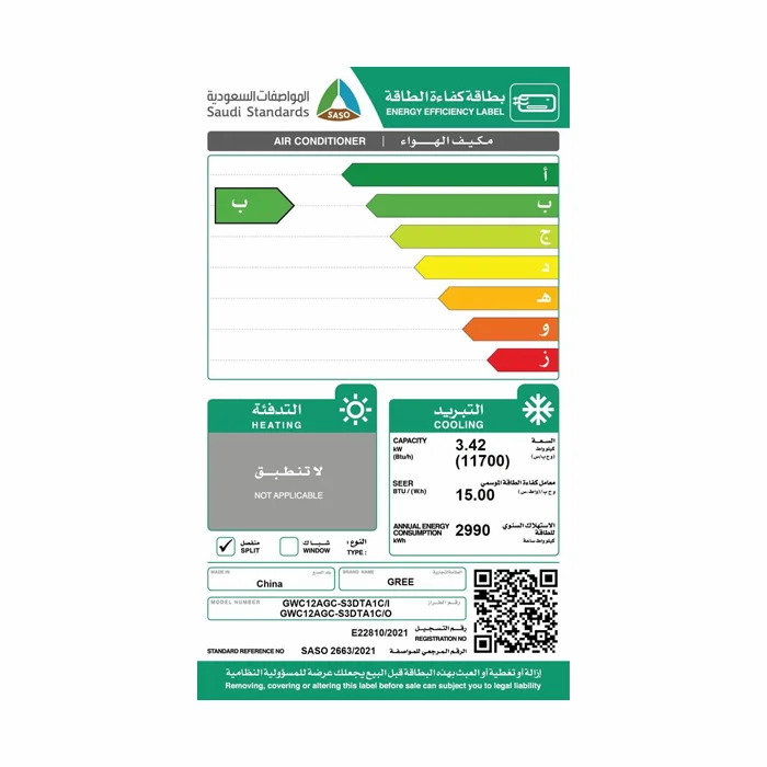 خصائص مكيف سبليت جري بولار برو 11700 وحدة انفرتر – بارد :