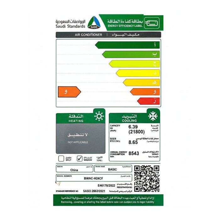 خصائص مكيف شباك بيسك 24000 وحدة – بارد :