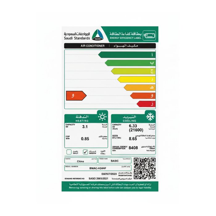 خصائص مكيف شباك بيسك 24000 وحدة حار – بارد :